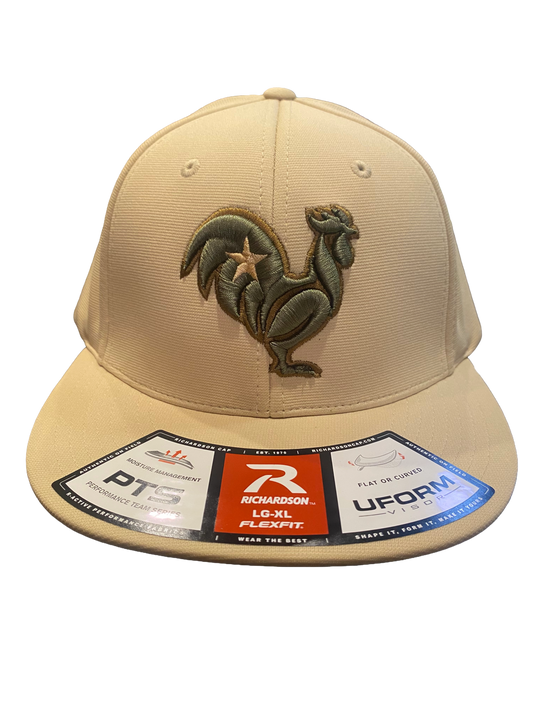 Army green rooster with khaki outline & star, khaki hat