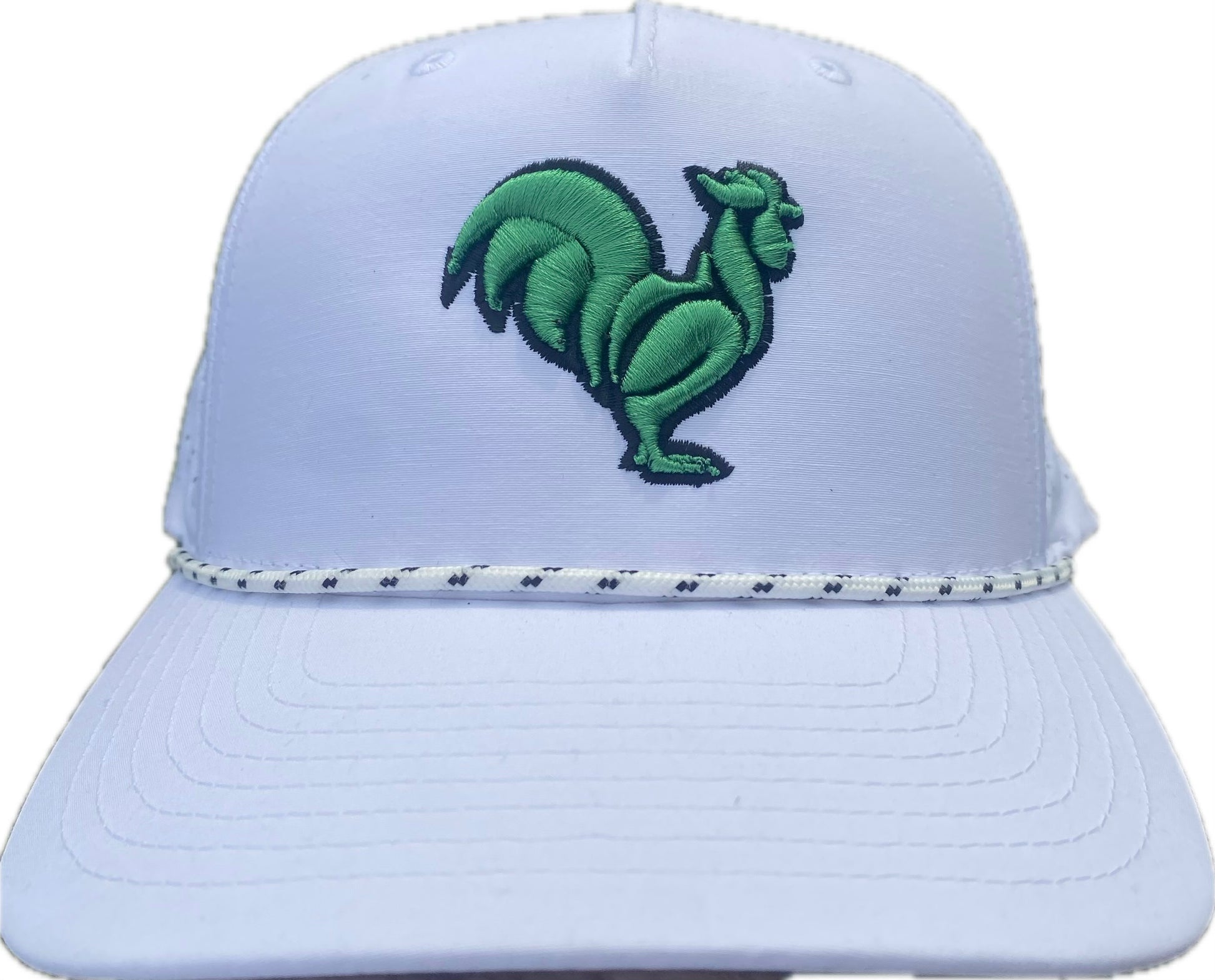 Kelly green rooster with black putline on white Snapback